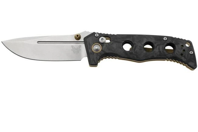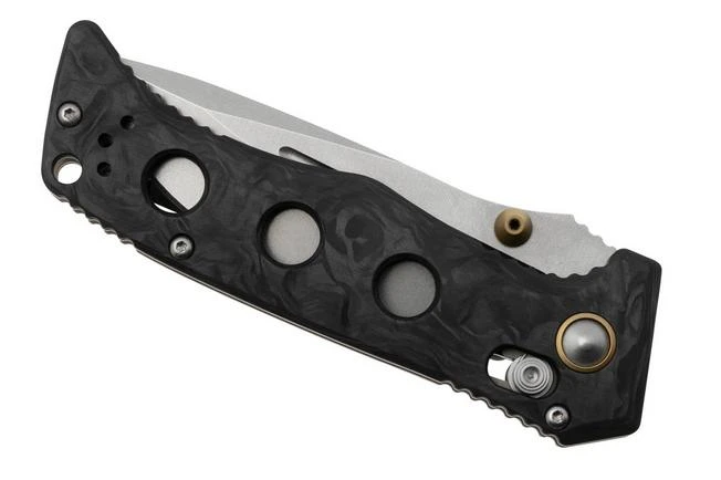 The Benchmade 273-03 Mini Adamas Marbled Carbon Fiber is a very sturdy pocket knife. Compared to the original Adamas it might be Mini, but with an 8.3 cm blade it is not a small pocket knife. It is as strong as its predecessor. Perhaps even stronger still! Shane Sibert designed the Adamas collection for soldiers and other professionals. A solidity is key. The construction of the handle, the blade and the lock are therefore great.
