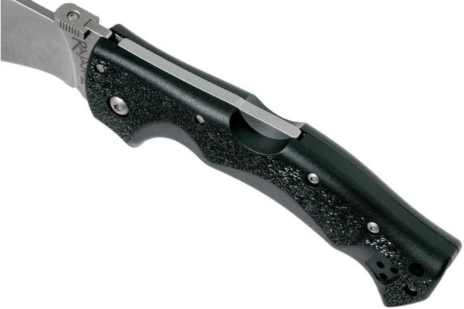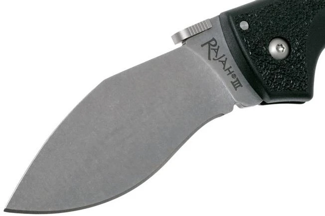 The Cold Steel Rajah III is a pocket knife with a blade with the convex shape of a Kukri. The blade looks very cool thanks to the stonewashed finish. This knife radiates decency. You can easily open the 3.6 mm blade with one hand with the thumb plate and when opened it is locked by the solid Tri-Ad-Lock. The Grivory handle offers enough grip. In short, a knife made for the more demanding tasks while it is smaller and more manageable than the Rajah II.