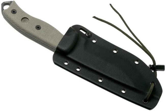 The ESEE Model 5 is a solid survival knife with a blade made from 1095 carbon steel. The extremely sustainable powder coating on the blade protects it from the increased corrosion sensitivity of the carbon steel. The wonderful usage qualities of the steel guarantee a lifetime of fun. The full tang blade is enhanced with a micarta handle. The handle feels slightly coarse which is great for grip and comfort. The ESEE Model 5 is a large and solid knife that can withstand extremely heavy use. When compared to the other ESEE models the ESEE 5 is enhanced with a relatively thick 6.5 cm blade. If its size and weight might be a little too much the Model 4 or Model 3 are great smaller alternatives.