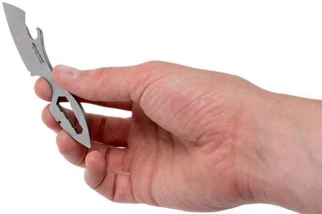 The Kizer Crocotool T111 is a practical and ompact fixed neck knife, with a couple practical tools. In addition to a modest blade made from CPM S35VN steel the spine has been enhanced with a bottle opener. Because of its clever design you can also use it as a can opener. The handle is enhanced with a wrench. The smallest cut out of the wrench can be used as a bit holder for standard 6 mm bits. The base of the handle is enhanced with a small slot to make sure you can strip wires and the end of the handle can be used as a flat screwdriver or pry-bar.