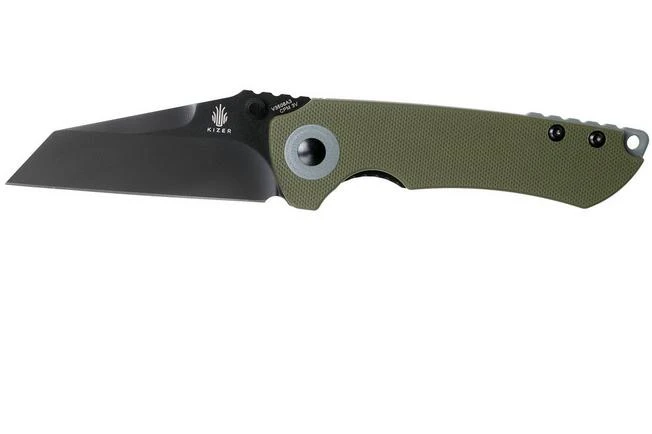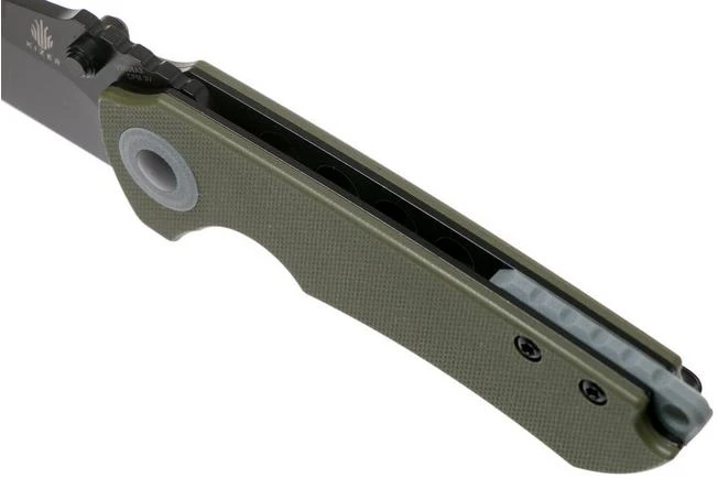 The Kizer Critical Mini is the small edition of the Kizer Critical. Both knives were designed by Matthew Christensen. This knife has a stunning, modern design. For example, a collar was placed around the pivot. The grey-coloured details on this green G10 knife look sleek.