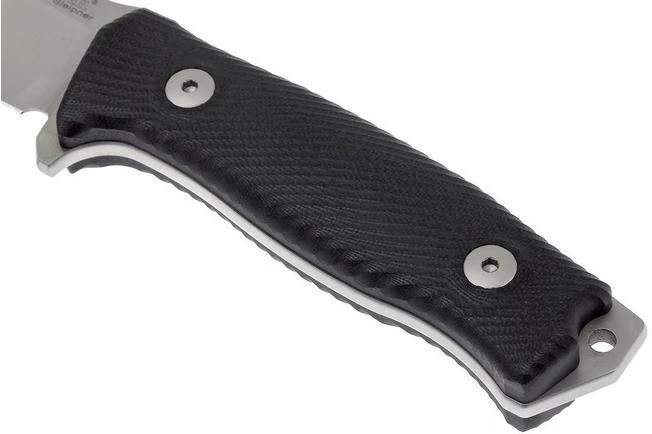 The LionSteel M5 is an all-round fixed knife. This knife can be used as a survival knife but it is also a great hunting knife. The Sleipner steel blade is hardened up to 60-61 HRC. The length of the blade of this knife is 11.5 cm. On the spine of the blade, around the transition of the handle, you find a small protrusion. So small you hardly notice it, but large enough to offer your thumb more grip. The entire spine has a lovely finish, something we often see on Italian knives. The G10 handle is beautifully decorated and has subtle grip grooves. These give the knife a graceful and elegant look and feel.