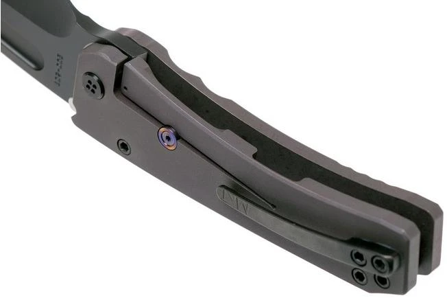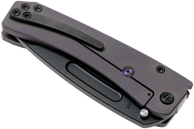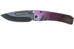The Medford Midi Marauder is a cool and robust pocket knife with a look and feel completely its own. Striking is the thickness of the blade in combination with the thickness of the handle. They both have the same thickness. As such the Midi Marauder looks incredibly decent. Unique about this Midi Marauder is that the handle is enhanced with a faceted show side with a violet-coloured anodized finish and a blade with a matt-black PVD coating.