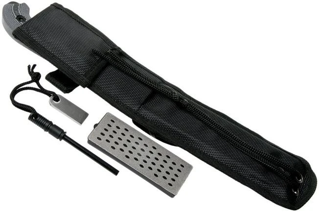 The Schrade Frontier 7″ Fixed Blade SCHF52M is a solid survival knife, for a good price. The well-known and popular 1095 carbon steel was used for the blade. We know this type of steel from many major knife brands. The fact that Schrade can offer a comparable knife at such an attractive price is simply impressive. Especially when you look at the fact that it comes with a sharpening stone and firesteel. A complete survival knife, for a very good price.